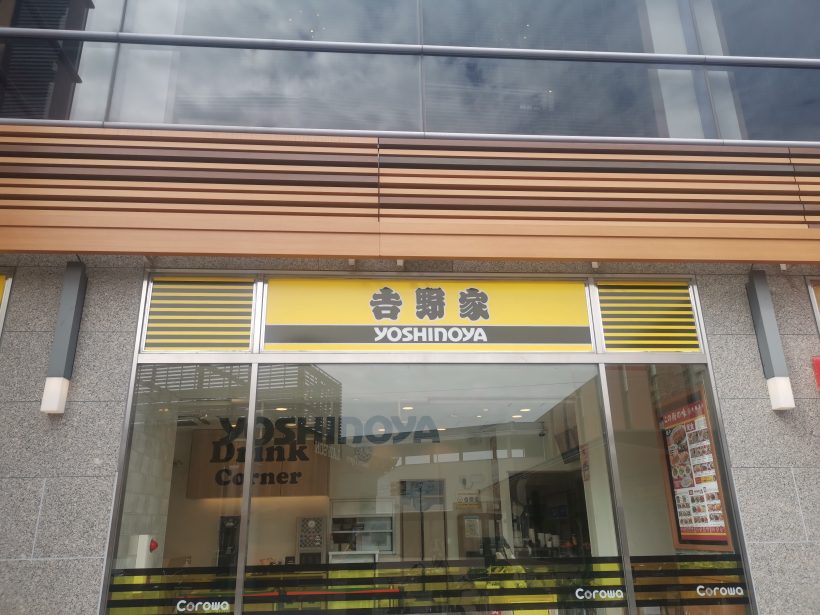 さらに甲子園駅前にある牛丼屋も通常オレンジ色である部分が虎仕様になっています。