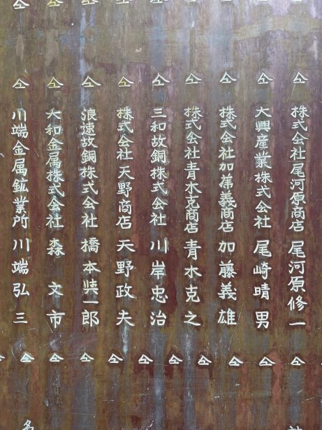 真鍮原料の扱いを主業とする「三和故銅」は近年の記念事業などにご寄付させていただいてます。